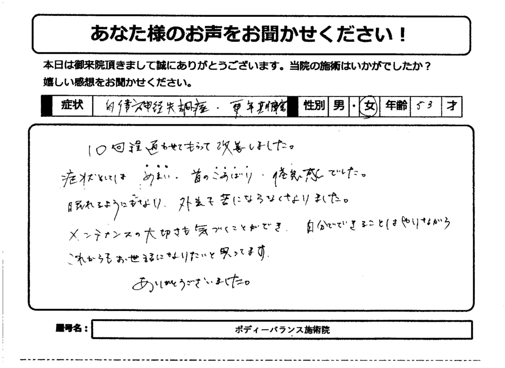 自律神経失調症、更年期障害、倦怠感、睡眠障害で来院されました。